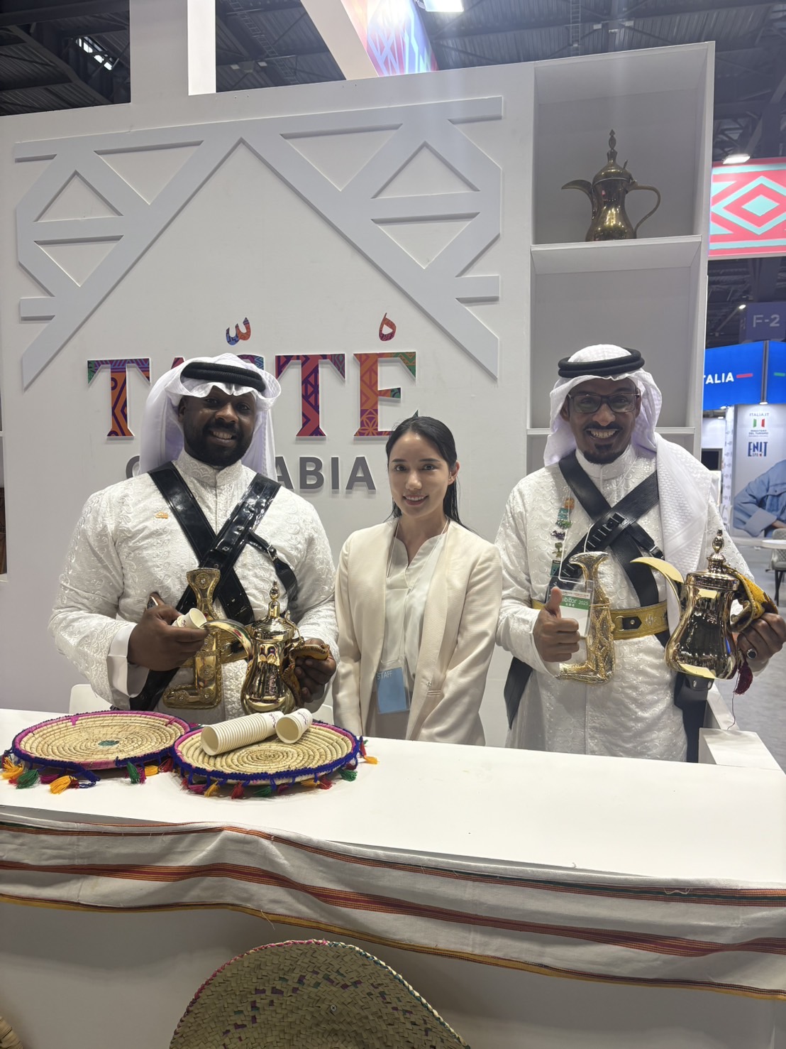 愛知・中部・北陸の観光PRということで、地元名古屋市出身のフリーアナウンサーとしてはやりがいのあるお仕事でした。開催テーマが「旅は”知”の再発見」で、まさに私自身もいろんな発見があって楽しかったです。サウジアラビアのブースの方々と写真を撮らせていただいたり、国際色豊かで楽しかったです。