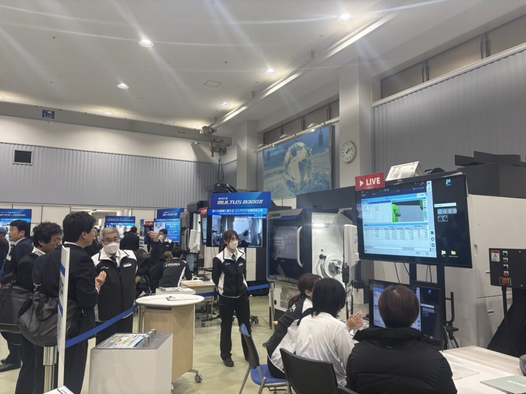 オークマ様は工作機械メーカーとして、日本のものづくりを支えている企業です。本社工場での開催ということで、会場には最新の機械がずらりと並び、多くのお客様で賑わっていました。